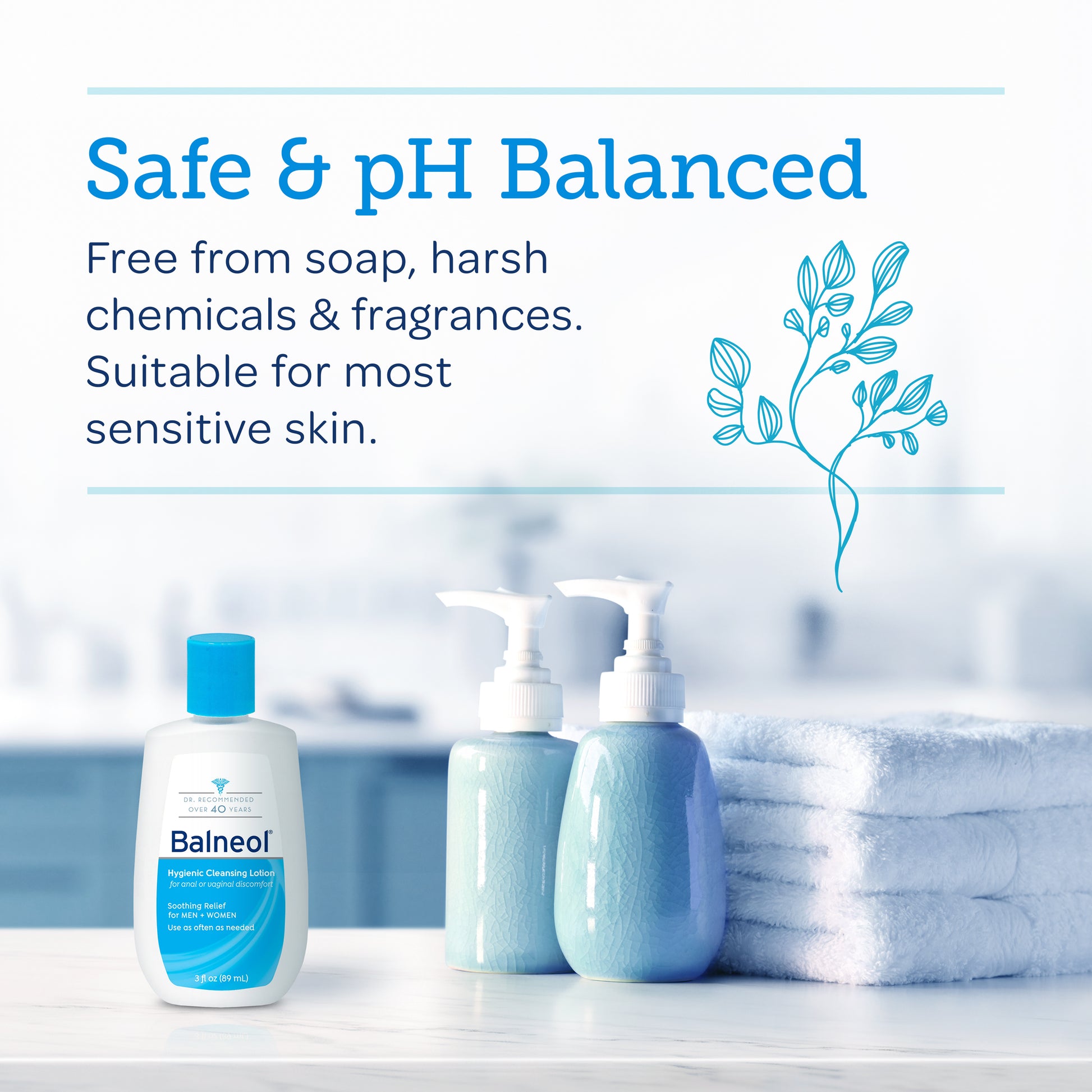 Our gentle, non-irritating formula is suitable for everyone. Made from carefully selected ingredients, Balneol®'s Hygienic Cleansing Lotion is perfect for sensitive skin, making your comfort our priority.